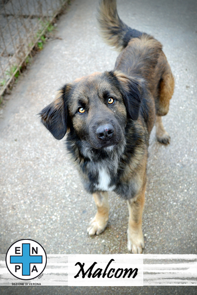 In realtà Malcolm è un giovane cucciolone di 2 anni con una buona parte di vita già passata in canile.