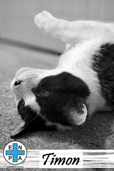 Con gli altri gatti non ha scontri, ma preferisce starsene per conto suo; quindi, sarebbe ideale per lui una casa dove possa essere l’unico felino… così da potersi godere tutte le coccole in esclusiva! Timon aspetta solo una cosa: un divano su cui sonnecchiare, qualche carezza al momento giusto e una famiglia da amare.